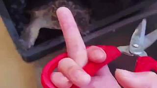 用剪刀挑釁王八,竟反被咬中手指