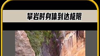 女人正在攀巖,下一秒就要掉下去了