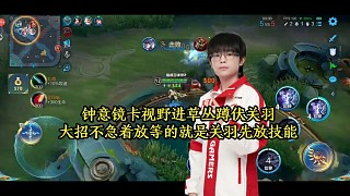 鐘意鏡卡視野進草叢蹲伏關(guān)羽,大招不急著放等的就是關(guān)羽先放技能