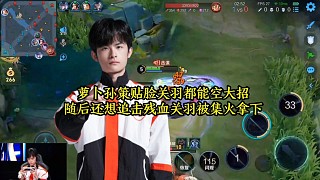 蘿卜孫策貼臉關(guān)羽都能空大招,隨后還想追擊殘血關(guān)羽被集火拿下